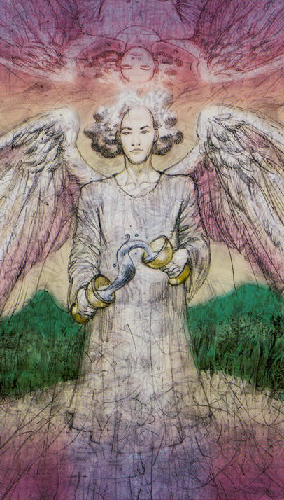 dos partes de una escena en el Seis de Oros donde está dando y recibiendo de sí mismo…